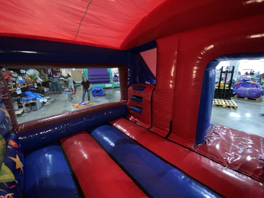 Add vibrant fun and excitement to your next event with this colorful combo castle — perfect for boys and girls alike! Featuring a spacious enclosed bounce area plus a small front slide, it’s designed to fit most gardens with ease. Safety mats included for worry-free playtime! 🌈✨