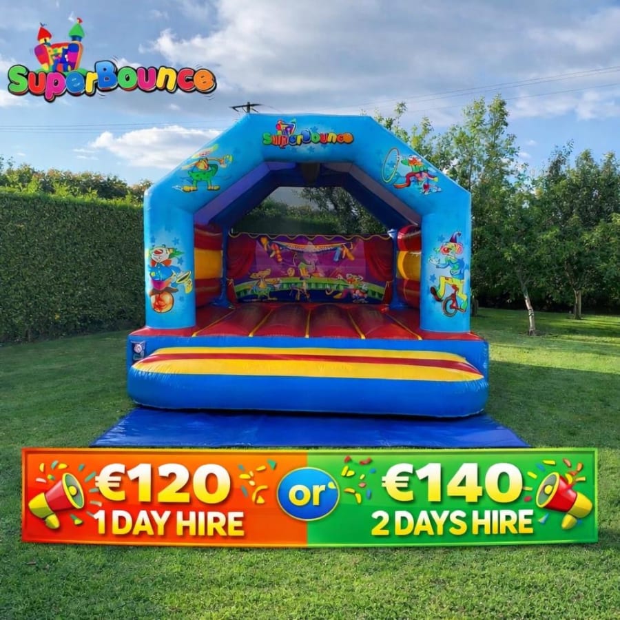 Bring smiles to your event with our Clown Theme Bouncy Castle, measuring 15ft x 12ft—perfect for children’s parties, Communions, Confirmations, and special occasions!