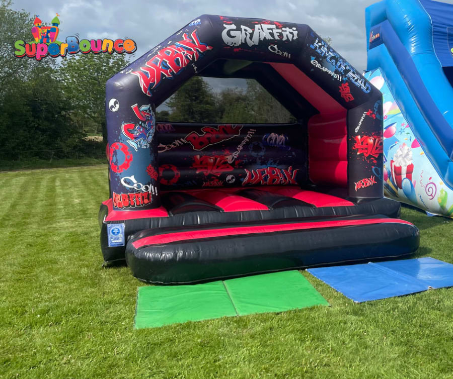 Bring smiles to your event with our Graffiti Theme Bouncy Castle, measuring 12ft x 12ft—perfect for children’s parties, Communions, Confirmations, and special occasions!