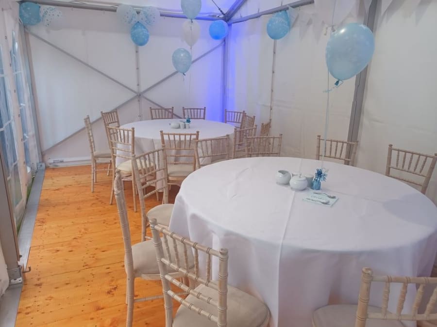When you choose our 20ft x 10ft Marquee (Full Package), you get everything you need for a successful event. The package includes solid wooden flooring, providing a sturdy and comfortable surface for your guests to walk and dance on. The marquee is also equipped with lights, creating a warm and inviting atmosphere. Additionally, we provide 3 x 6ft wooden trestle tables and 20 white folding chairs, ensuring that your guests have a comfortable place to sit and enjoy the event. We also offer a range of optional Party Extras to make your occasion that little extra special.