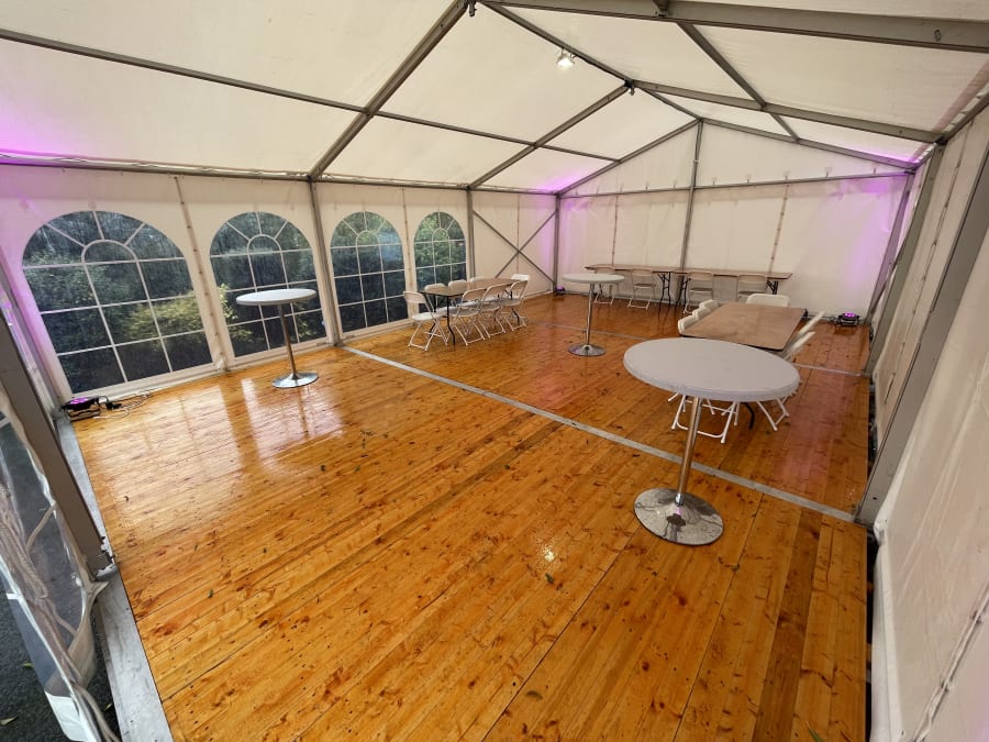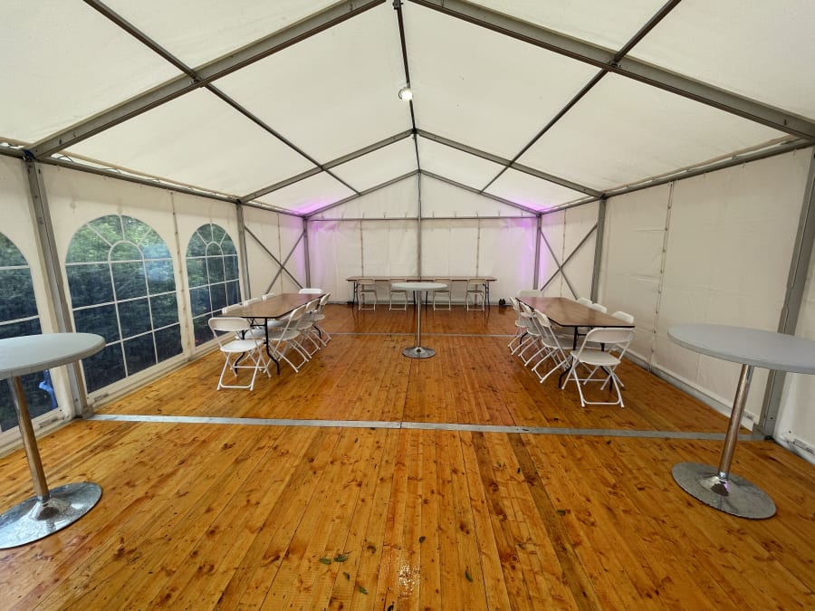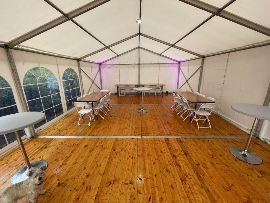 Our 20ft x 30ft marquee is suitable for up to 60 guests.