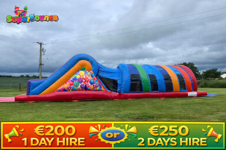 🌈 Get ready for 45 feet of non-stop action! The 45ft Spiro Colour Dash is a thrilling, high-energy inflatable packed with vibrant colours and playfull challenges. Perfect for boys and girls of all ages, this showstopper is guaranteed to turn heads at parties, school events, and community gatherings across Drogheda, Clogherhead, Dunleer, Ardee, Dundalk, Slane, Duleek, Bettystown, Balbriggan, and nearby areas.